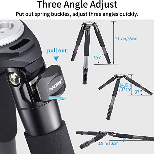 Design professionale: il treppiede in fibra di carbonio resistente di alto livello ha una padella di montaggio anodizzata dura in lega di alluminio, un gancio per pesi sovradimensionato e una vite di fissaggio per un blocco sicuro della testa del treppiede. È compatibile con ciotola da 75 mm o ciotola da 100 mm e altre attrezzature possono essere attaccate direttamente al treppiede, come teste fluide e teste a sfera, ecc.