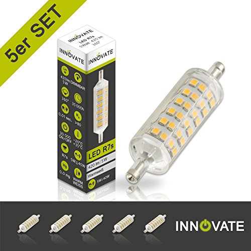 Innovate R7S LED lampadina lampada faretto 78 mm/5 Watt - ricambio per 40 W - Lampadina alogena, Bianco caldo - 2700 K, 72 X SMD, dimmerabile, 420 Lumen, angolo di diffusione 360 °, R7s, 5.00 wattsW, 230.00 voltsV