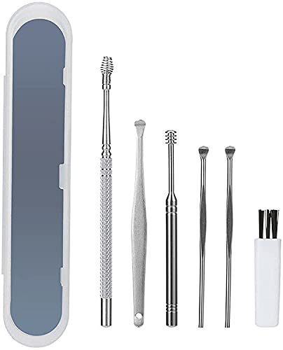 Innovative Spring Ear Wax Cleaner Tool Set 6pcs, Ear Pick Earwax Removal Kit, Ear Cleansing Tool Set, Ear Curette Ear Wax Remover Tool with Cleaning Brush and Storage Box