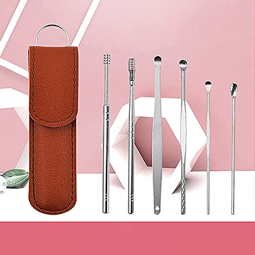 Innovative Spring Ear Wax Cleaner Tool Set, Portable Ear Wax Removal 6-in-1 Ear Pick Tools, Earwax Removal Kit for Children and Adults (A)