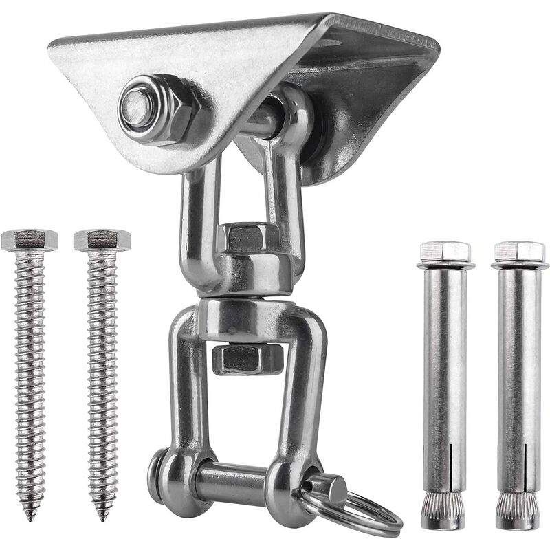 DESIGN DI ROTAZIONE A 360° - Gancio di fissaggio a rotazione libera a 360° con fibbia a strappo che si apre facilmente. Design innovativo e brevettato. 【ALTA QUALITÀ, PROTEZIONE DALLA CORROSIONE】 Anelli in acciaio inossidabile 304 realizzati con materie prime di alta qualità. Nessuna ruggine, resistenza alla corrosione, elevata durezza. 【ROBUSTO SU】I ganci oscillanti per impieghi gravosi di livello commerciale sono progettati per l'uso da parte di bambini e adulti e progettati per uso residenziale con una portata di 250 kg, sono sicuri.< /p> 【FACILE DA INSTALLARE】 Abbiamo preforato due fori per il fissaggio a travi di legno o cemento. Compresi 2 ancoraggi in cemento e 2 bulloni esagonali. Viti di espansione per applicazione in calcestruzzo preforate installate in pochi minuti. 【MULTIFUNZIONE】 Utilizzo ottimale come gancio da parete per imbracatura, trainer per sospensione, sacco da boxe, palestra, yoga, altalena all'interno o all'esterno. Tieni presente che a causa delle misurazioni