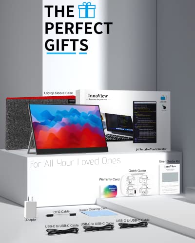 InnoView Monitor Portatile Touchscreen, 14 Pollici Monitor USB C da Rotazione Automatica Freesync,100% SRGB 3840x2160 Ultra HD IPS con Doppio Type C/Mini HDMI per Laptop PC,PS5,Smartphone,Switch