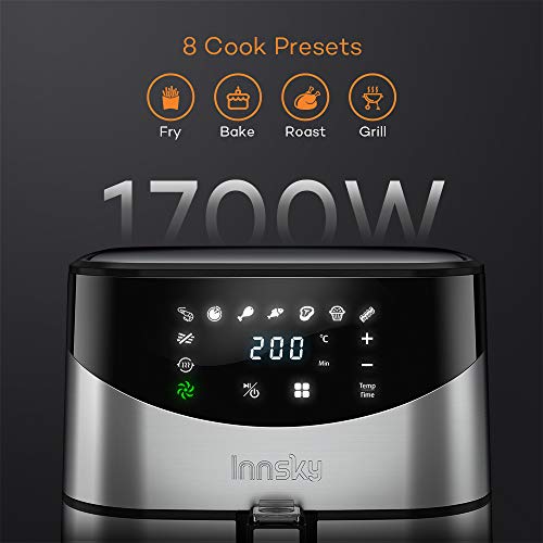 Innsky 5.5L 1700W, Friggitrice ad Aria con 7 Programmi + Funzione di Avvio/Pausa/Riavvio Differita, Anti-surriscaldamento, Display Digitale, Fornetto Elettrico con Ricette Multilingue, No BPA o PFOA (XL)