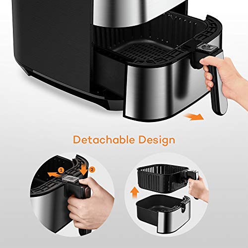 【Grande capacita' da 5,5l & 1.700w di potenza】Questa friggitrice ad aria è adatta per grandi famiglie composte da oltre 4 persone e può preparare molto cibo in una sola volta. Essa è utile per friggere, cuocere come in forno, grigliare o arrostire con poco olio;