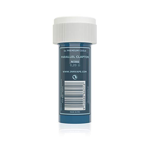 Le bobine Innvape sono realizzate con filo NI80 di alta qualità e raggiungono in modalità bobina singola ca. 0,20ohm* Nel funzionamento a doppia bobina, il valore Ohm specificato viene dimezzato.
