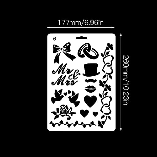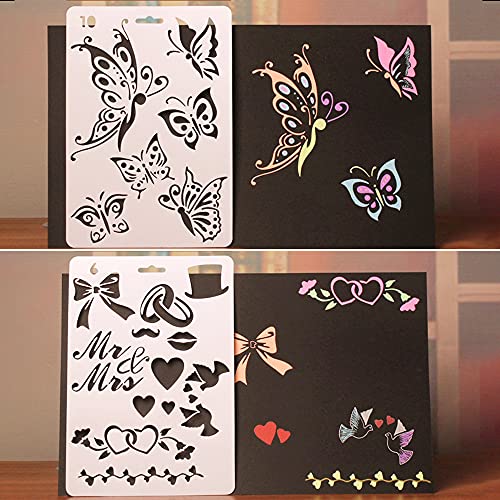 Contenuto della confezione: 8 stencil nella confezione (5 stencil con caratteri diversi e 3 stencil con motivi squisiti). Ogni stencil misura circa 26 x 17,7 cm.