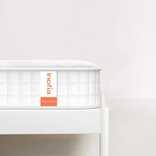 Inofia - Materasso in memory foam e molle insacchettate, 25 cm, materasso con design ergonomico a molle e tessuto trapuntato traspirante ed elasticizzato/prova di 100 notti senza rischio, Memoria di forma, Pure White(135x190x25cm)
