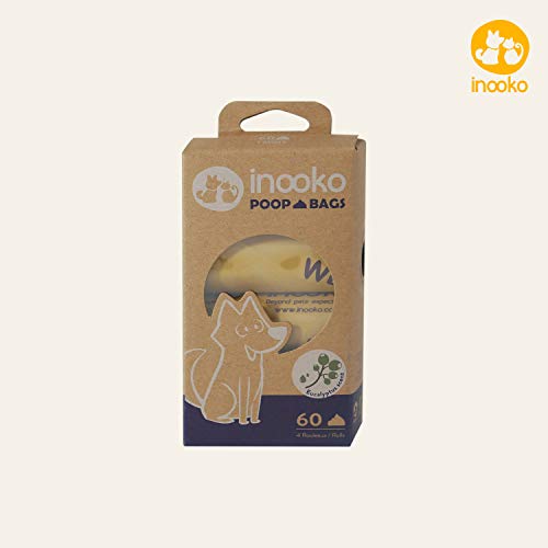 Inooko - 60 sacchetti per cani profumati all'eucalipto, extra large, ultra resistenti, a prova di perdite e biodegradabili. 4 rotoli di ricarica, 1 mese di fornitura