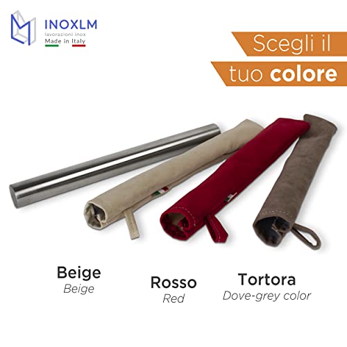 INOXLM Mattarello in Acciaio Inox per Pasta di Zucchero impasti Cucina Pane Pizza Dolci Torte (Custodia Tortora)