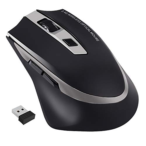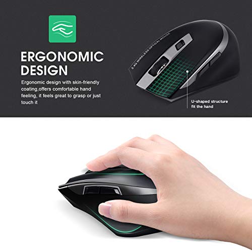 INPHIC Mouse wireless ricaricabile, clic silenzioso Mouse senza fili ergonomico 2.4G con ricevitore USB, 6 pulsanti, 800/1200/1600 DPI per PC Computer Laptop Windows Mac, Nero