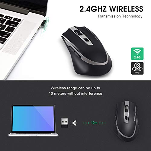 ✔ Connessione wireless 2.4G: connessione wireless 2.4Ghz efficiente e affidabile. Questo mouse ergonomico per laptop è altamente resistente alle interferenze e ha una distanza di trasmissione di 10 metri, eliminando efficacemente ritardi, perdite e interferenze. Eccellente mouse wireless per casa, ufficio anche giochi.
