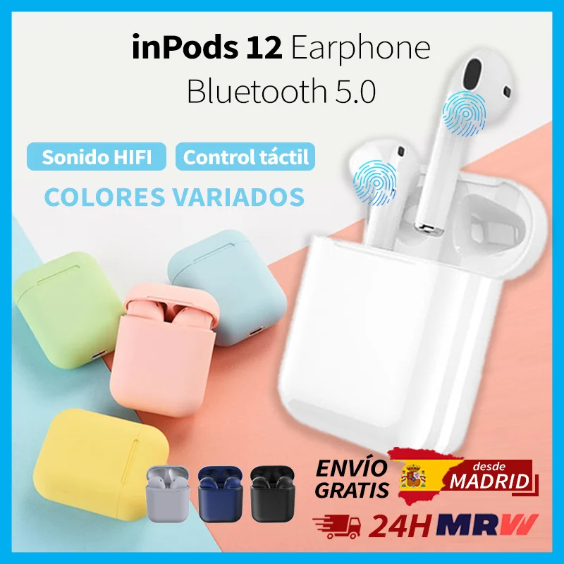 Inpods 12 tws wireless earphones bluetooth assorted colors touch Control helmets with microfono handsfree Manos telefono ear