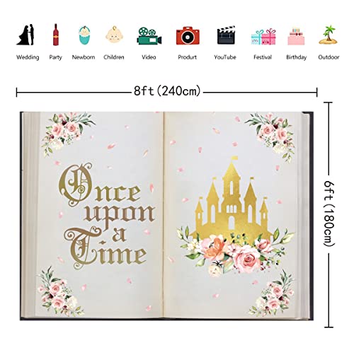 INRUI C'era una volta Backdrop Fiaba Libri Castello Rosa Floreale Principessa Fotografia Sfondo Antico Castello Matrimonio Felice Anniversario Compleanno Decorazioni di Partito (2,4 x 1,8 m)