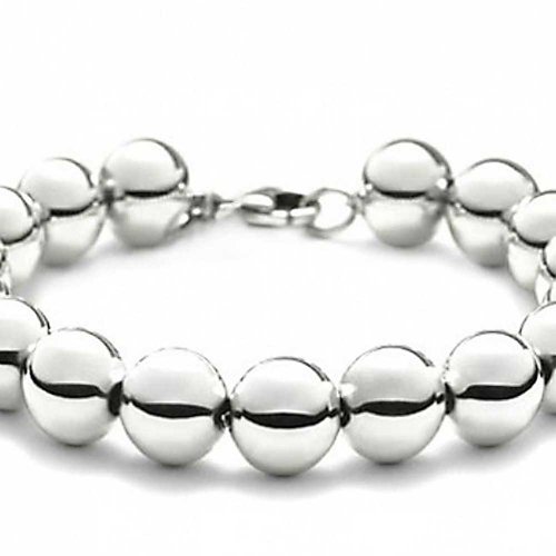 Materiale: .925 Sterling Silver, Misura: Disponibile in 7,5, 8 e 9 pollici L x 0,4 pollici W, perline: 10 mm D, peso: 17,5 grammi