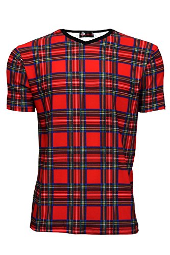 Tartan rosso classico Punk stampato Mens V Neck T-Shirt