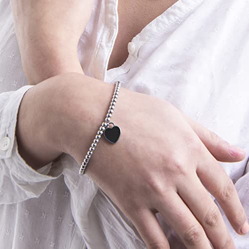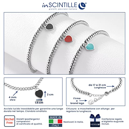 InSCINTILLE Cuore Rock Bracciale Donna a Palline in Acciaio Inossidabile con Cuore Colorato (Nero, Acciaio inossidabile)