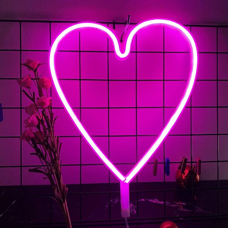Dalle strisce LED flessibili in silicone e una piastra posteriore in acrilico, non è necessario. Non preoccuparti che si surriscaldi, è sicuro, nessun rischio di rompere vetri o perdite di sostanze pericolose. BELLISSIMO DESIGN: Cuore l'insegna al neon è a forma di cuore, con un'affascinante luce rosa, l'incredibile luce al neon artificiale sostituisce la noiosa lampada da scrivania, crea atmosfera, sorprende e aggiunge colore alla tua camera oscura. DIMENSIONE: La dimensione del segno del cuore LED è 29 x 37,5 cm. C'è un buco dietro la lampada a forma di cuore al neon, appendila alla parete della tua camera da letto o lo scaffale illuminerà i tuoi festeggiamenti. Dual Power: LED - Le luci al neon possono utilizzare 3 batterie AA (batterie non incluse) o cavo USB. Può essere molto comodo usare una batteria o una chiave. USB per illuminare insegne al neon. Le applique al neon sono utilizzate a