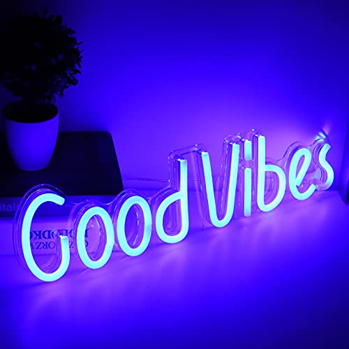 Insegna al neon a forma di lettera Good Vibes, luce al neon da appendere a parete alimentata tramite USB per la decorazione della festa di compleanno di una proposta di bar in camera da letto