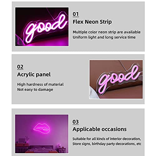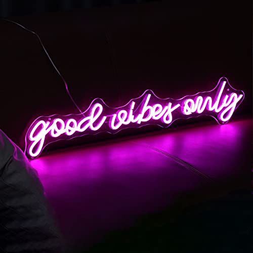Insegne al neon personalizzate GOOD VIBES ONLY per la decorazione della parete, insegne al neon a LED viola dimmerabili fatte a mano per la decorazione della parete della camera da letto