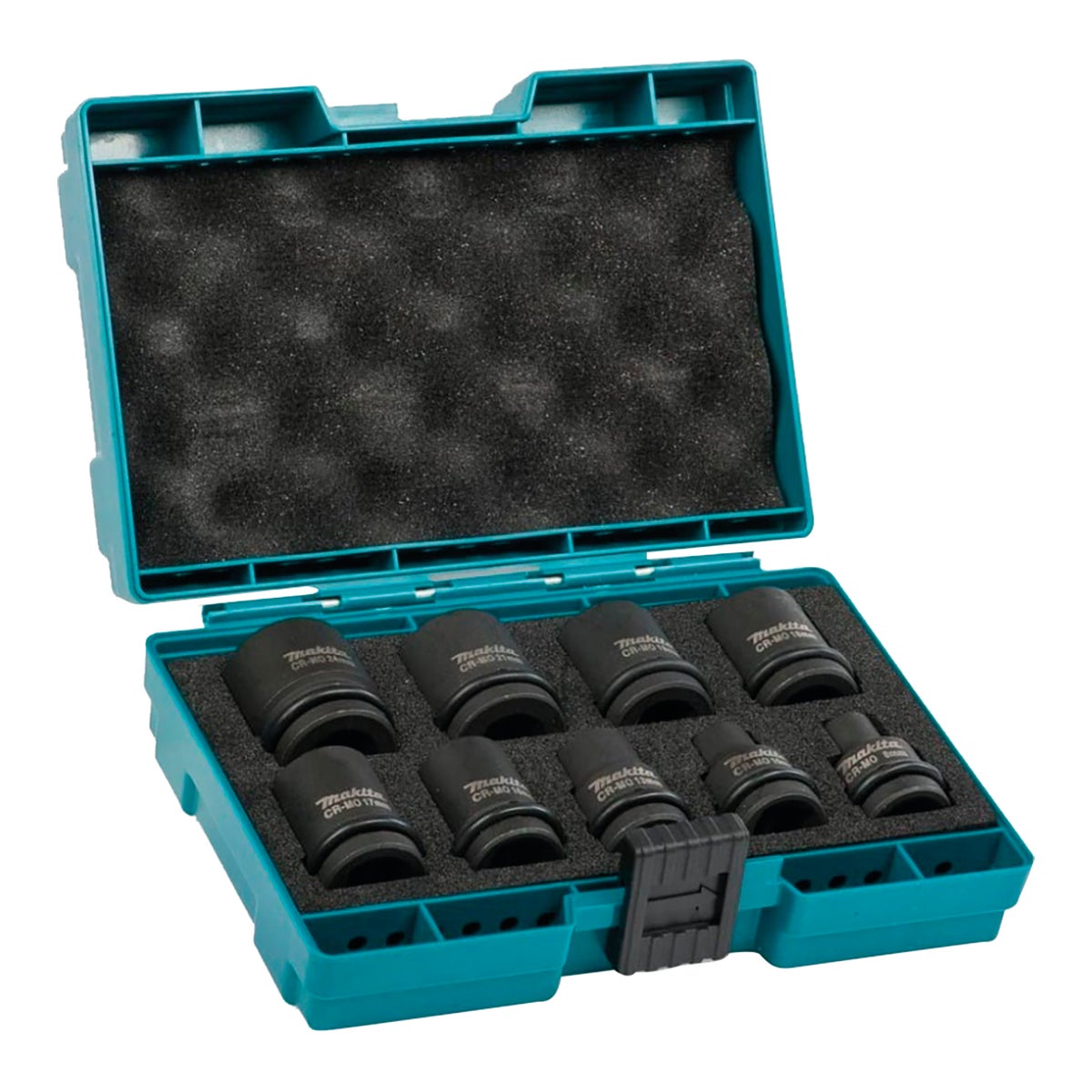 Set di bussole a impatto quadrate Makita da 1/2"Questo set contiene 9 comuni misure di Makita: (mm) 8, 10, 13, 16, 17, 18, 19, 21, 24 connettori femmina. kit lavoro completo ed organizzato in valigetta