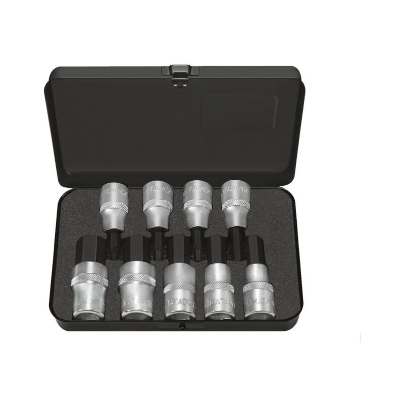 Vite-on giri (esadecimale) per una perfetta trasmissione di potenza. Inserti a vite, 12,5 mm (1/2), 9-PC. Per viti metriche interni. Suggerimento più duro in acciaio speciale. Imposta contenuto: 5, 6, 7, 8, 9, 10, 12, 14, 17, 19x62 mm. Per il controllo delle mani con quattro canteens interni secondo Din 3120, C 12.5 / ISO 1174 e Grip -on Cross -Knurling. Realizzato in acciaio cromatico vanadio. Tutti gli inserti del cacciavite con rivestimento di supercromo Matador per una finitura superficiale più fine e una forte resistenza a danni, graffi ecc. Nella scatola in acciaio in lamiera stabile, qualità permanente, rivestito di polvere nera. Con inserto MTS nero realizzato in schiuma morbida. Resistente a oli e grassi. Matador è uno dei pionieri del settore degli strumenti. Dal 1900 produciamo strumenti manuali di qualità attorno alla vite. Sosteniamo strumenti premium esigenti. Affidabile, orientato al design, senza fronzoli. Per le persone che sanno cosa vogliono. Che si trovano