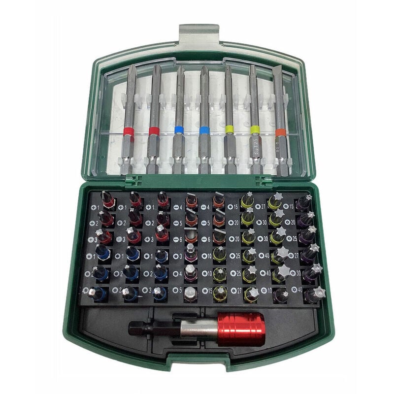 Kit Inserti Giravite Cacciavite Per Trapano Avvitatore 56 Pezzi Punte Precisione Kit da 56 punte ideale per qualsiasi progetto, tutto ordinato in un appostito contenitore, vi basterà avere un trapano oppure un avvitatore e con l'apposito adattatore il gioco è fatto! N.B. Il colore dell'articolo sarà spedito in base alle disponibilità del magazzino Caratteristiche tecniche: Kit inserto giravite Per trapan avvitatore Numero di punte: 56 1 x Portapunte a sgancio rapido 3 x Punte esagonali (3, 4, 5 mm) 6 x Punte a taglio (2 x SL4, 2 x SL5, 2 x SL6) 7 x Punte Trx di sicurezza 25 mm (T10, T15, T20, T25, T27, T30, T40) 9 x Punte Phillips 25 mm (3 x PH, 3 x PH2, 3 x PH3) 9 x Punte Pozidriv 25 mm (3 x PZD1, 3 x PZD2, 3 x PZD3) 14 x Punte Trx 25 mm (2 x T10, 2 x T15, 2 x T20, 2 x T25, 2 x T37, 2 x T30, 2 x T40) 1 x Punta a taglio 75 mm (SL6) 2 x Punte Phillips 75 mm (PH2, PH3) 2 x Punte Pozidriv 75 mm (PZ1, PZ2) 2 x Punte Torx 75 mm (T20, T25) Materiale del contenitore: ABS Materiale delle
