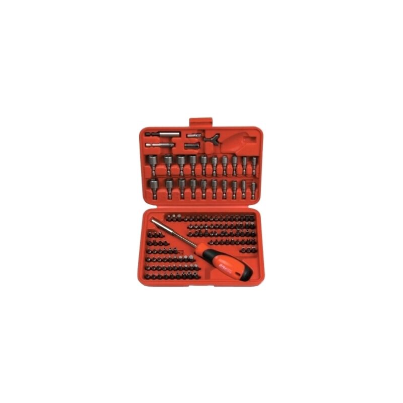 Set di inserti con cacciavite/giravite 122 pezzi riposti in comodo cofanetto in plastica, adatti anche per trapano a batteria. Il kit include inserti torx, flat (a taglio), philips (a croce), bussole e punte a stella a 3 viti. Queste ultime trovano spesso