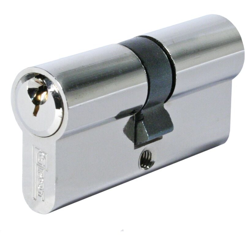 Inserto serratura simmetrico, da utilizzare in tutti i tipi di serrature da infilare - in ottone nichelato - lunghezza inserto: 62 mm (31 x 31 mm) - realizzato su profilo A2 - 10 mm - il set comprende: 5 chiavi