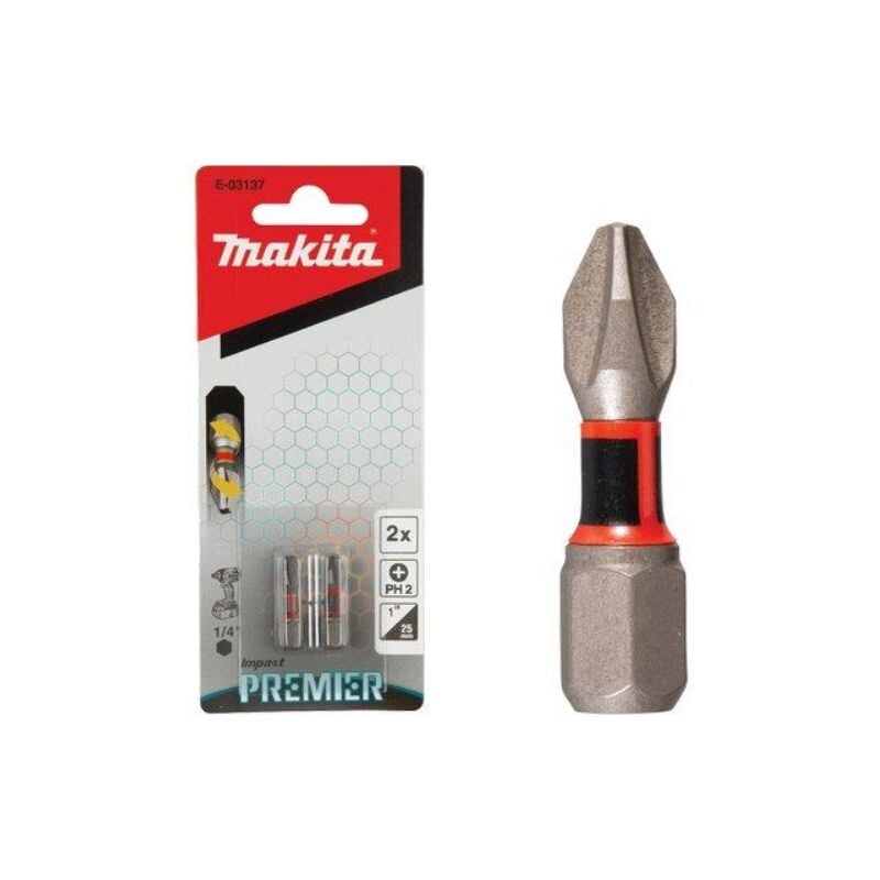 Inserto croce phillips x avvitatore impulsi makita (3 confezioni) Phxmm 2x25 cf=pz 2 in acciaio di alta qualità. studiato per resistere alle sollecitazione degli utensili a massa battente.