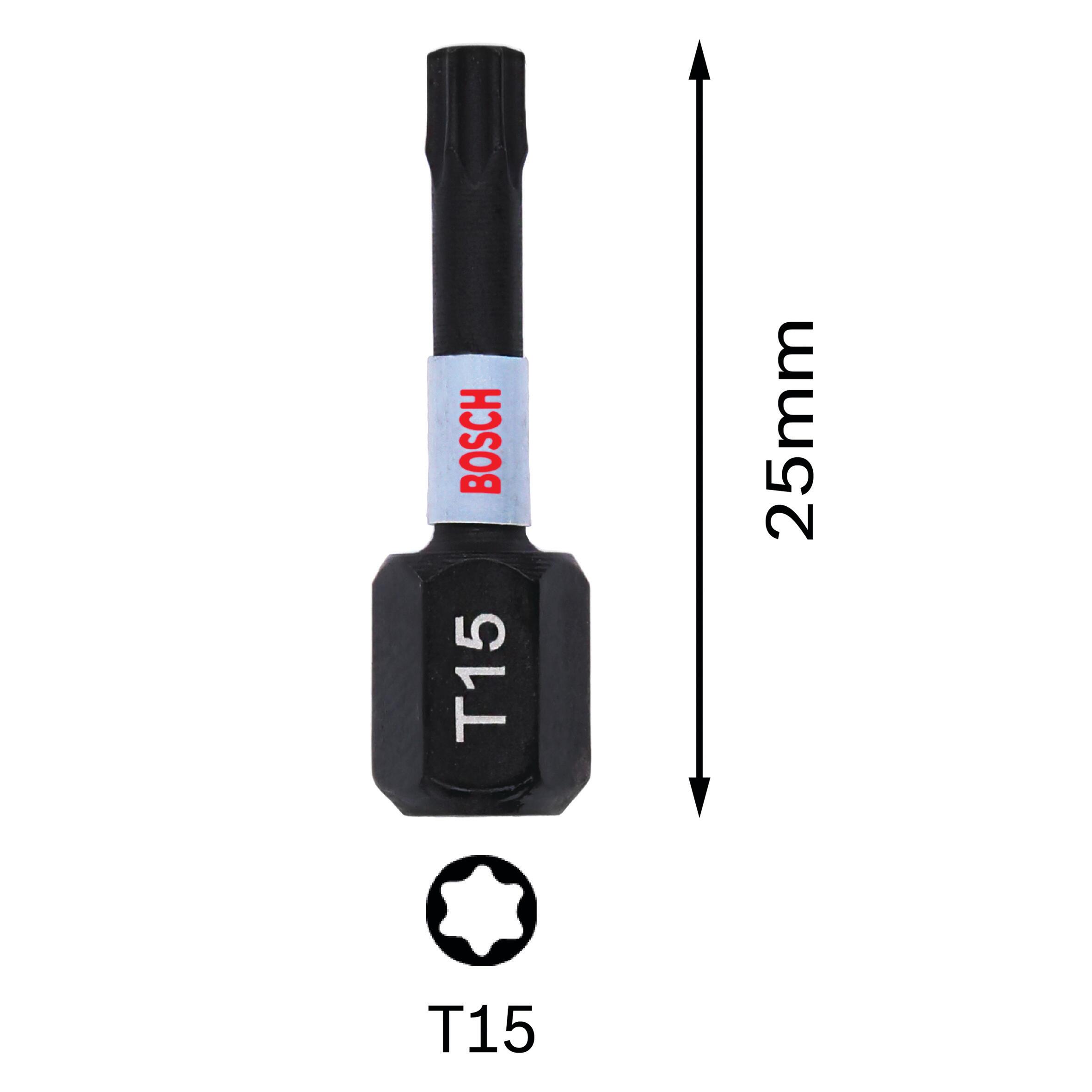 Bit Impact Control T15 25mm 2 pz. Accessorio per avvitatore a impulsi, per trapani a percussione, per trapani. La zona di torsione estesa lo rende estremamente solido per lavorazioni durature. Acciaio modificato S2 e un processo di trattamento termico ottimizzato per una resistenza extra e prestazioni elevate