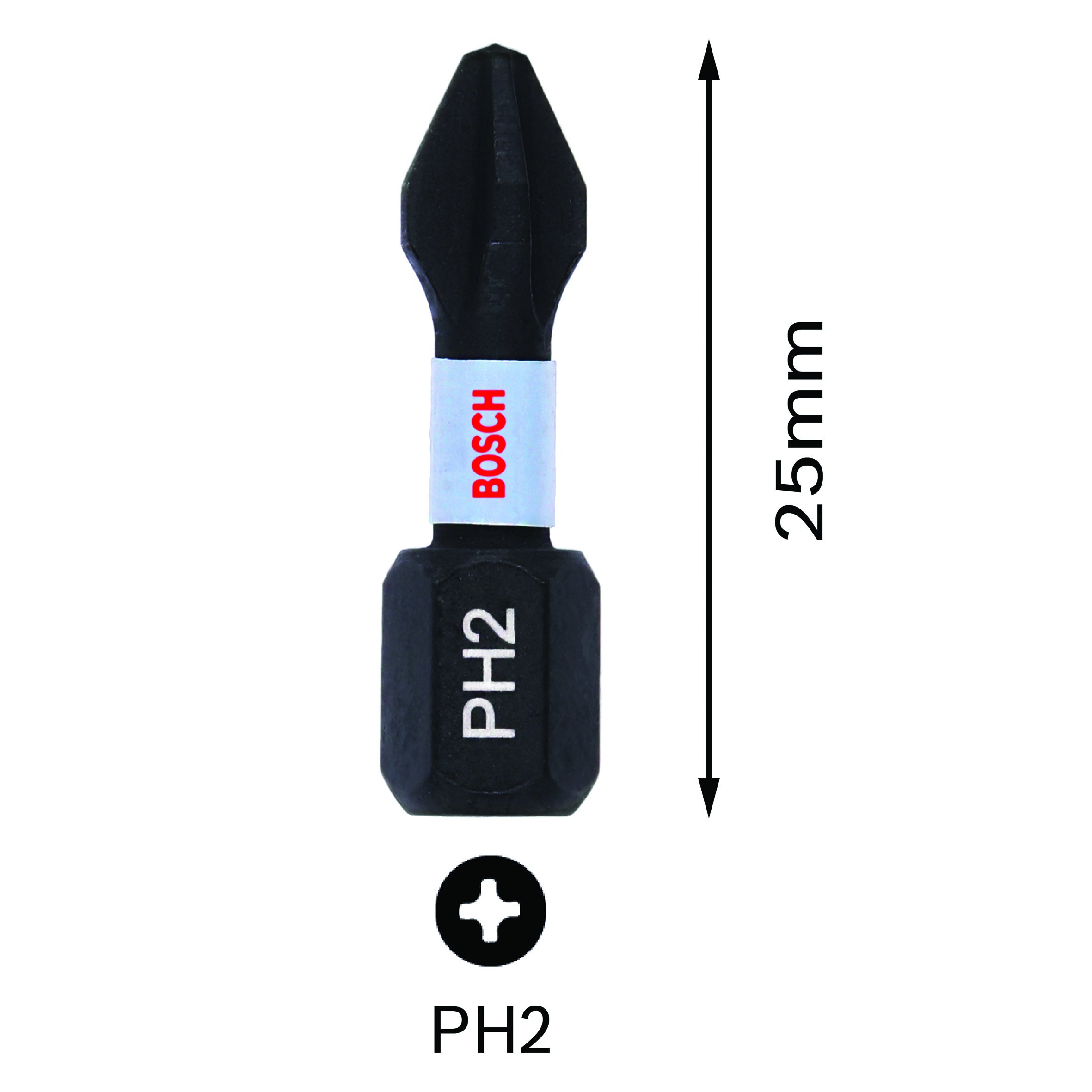 Bit Impact Control PH2 25mm 2 pz. Accessorio per avvitatore a impulsi, per trapani a percussione, per trapani. La zona di torsione estesa lo rende estremamente solido per lavorazioni durature. Acciaio modificato S2 e un processo di trattamento termico ottimizzato per una resistenza extra e prestazioni elevate