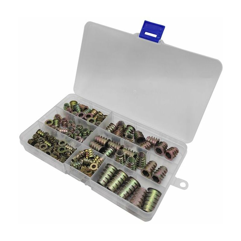Colore: 120 pezzi Il dado inserto filettato flangia esagonale ad alta precisione fornisce una presa filettata per parti in legno, simile a un geco.< br/>I dadi inserto filettato in legno sono avvitati nei fori preforati. In questo caso, le sporgenze esterne morderanno il legno per evitare che i dadi si girino o tirino, il che è molto adatto per 39;