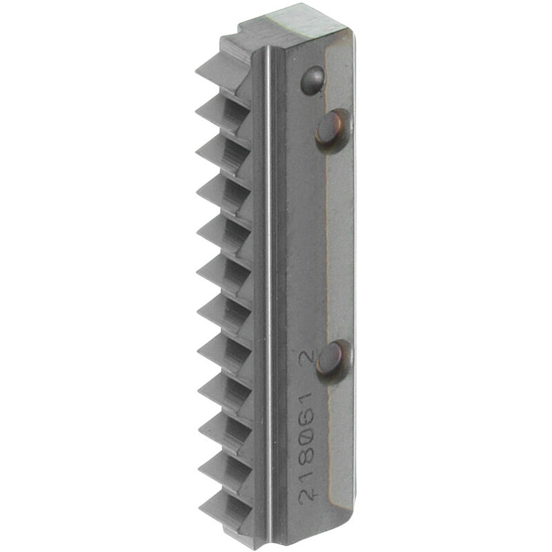 Inserti robusti per fresaper avanzamenti elevati ed elevata produttività. A 2 taglienti Uso: Per filettatura metrica interna a 60° a norma DIN / ISO R 262 (DIN 13) classe di tolleranza 6H. Nota: Per il montaggio fare attenzione sempre al lato uniforme degli inserti a filettare altrimenti si verificano deformazioni della filettatura! (Esecuzione lati con o senza marcatura). Avanzamento fz = HB 7720 in acciaio < 750 N/mm2 = 0,25 mm / dente. Avanzamento fz = HB 7735 in INOX > 900 N/mm2 = 0,15 mm / dente. Dati tecnici a umido max. idoneo Alluminio (a truciolo corto) m/min idoneo Grafite, GFRP, CFRP m/min idoneo INOX < 900 N/mm² m/min limitatamente adatto INOX > 900 N/mm² m/min limitatamente adatto Acciaio < 1400 N/mm² m/min idoneo Acciaio < 900 N/mm² m/min idoneo CuZn m/min idoneo Ti > 850 N/mm² m/min idoneo Uni m/min idoneo Alluminio > 10% Si m/min idoneo Acciaio < 750 N/mm² m/min idoneo Acciaio < 1100 N/mm² m/min idoneo Alluminio, plastiche m/min limitatamente adatto Acciaio < 500