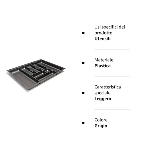 Inserto per portaposate Comfort, universale, per cassetto portaposate da 70 posate, ritagliabile da 610 - 660 mm, grigio argento