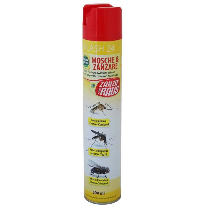 Insetticida spray 500 ml Mondo Verde KOS21 Ottimo insetticida spray ad effetto rapido, elimina in modo rapido: Mosche, zamzare comuni e zanzare tigre. Oltre a garantire una elevata efficacia contro gli insetti il prodotto rilascia anche un gradevole profumo nell'ambiente trattato. Composizione del prodotto 100gr. Permetrina: 25/75 gr Tetrametrina: 0.100 gr Piperonil Butossido: 0,500 gr Essenza: 0.200 gr