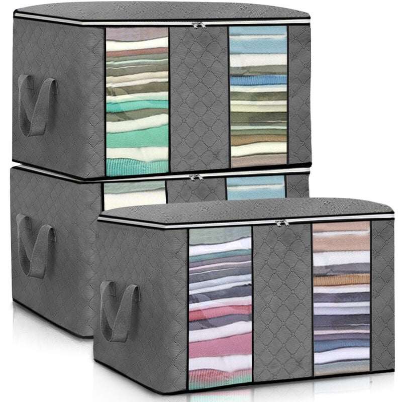 Caratteristiche: - Ampia finestra superiore in PVC trasparente, accesso più facile. - Cuciture spesse, pregevole fattura, linea operatore del tornio, ago e filo intenso, anche piatto. - 2 sezioni divise, facile da classificare e trovare i tuoi vestiti. - Non è facile rompere il filo quando viene trasportato e trascinato. - Perfetto per trasportare vestiti e oggetti in un trasloco, facile da inserire nelle scatole per traslochi. Caratteristiche: /> Materiale Tessuto non tessuto Colore Nero/Beige/Grigio/Blu scuro/Caffè Dimensioni 60x43x35/23,6x16, 9x13,7 pollici Il pacchetto include: 3 x custodia