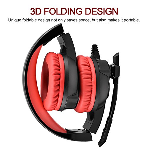 Insmart PS4 Gaming Headset, over-ear pieghevole PC portatile Mac Gaming cuffie con microfono a cancellazione di rumore e controllo del volume compatibile con Nintendo interruttore della Xbox One PS4 (3.5 mm stereo audio y splitter incluso)
