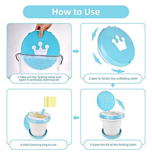 Facile da usare e da pulire: in 3 passaggi, apri il coperchio pieghevole del vasino, tira verso l'alto fino a quando non è completamente esteso, quindi posiziona la borsa e il tuo bambino è pronto per l'uso. Dopo aver usato il vasino, togliere la borsa e buttarla via, che è sia pulito che conveniente.
