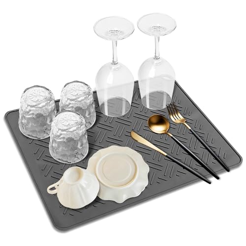 Joy & Inspiration Tappetino scolapiatti in silicone 40 x 30 cm, Grigio, con superficie inclinata, per un drenaggio ottimale dell'acqua, mantiene la vostra cucina pulita e asciutta