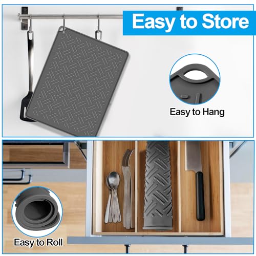 Resistente al calore: il tappetino per asciugare i piatti misura 40 X 30 cm, abbastanza grande da contenere pentole e padelle. Altamente isolato e resistente al calore fino a 450°F/230℃, protegge le mani dalla piastra calda.