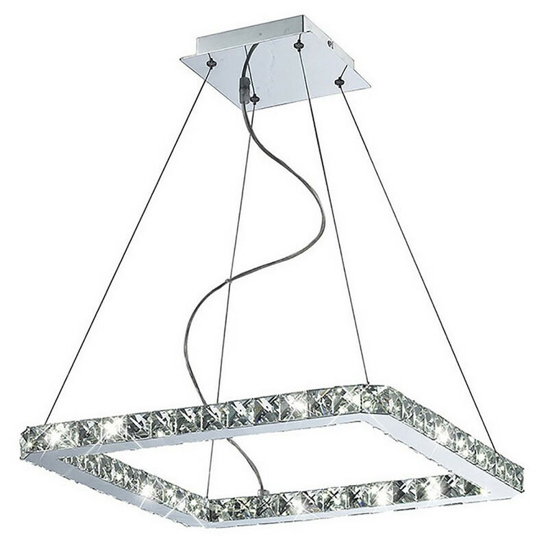 Inspired Galaxy Lampadario Quadrato Piccolo 24W LED 6000K Cromo Lucido/Cristallo | Finitura: cromo lucido | Grado di protezione IP: IP20 | Altezza minima: 30 cm | Altezza massima: 120 cm | Lunghezza: 47 cm | Larghezza: 47 cm | Tipo di lampada: LED integrato | N. di lampade: 1 | Lampadina inclusa: sì - integrata | Dimmerabile: no | Kelvin: bianco luce diurna 6000K | Lumen: 2250lm | Peso: 4,5 kg | Potenza (massima): 24 W