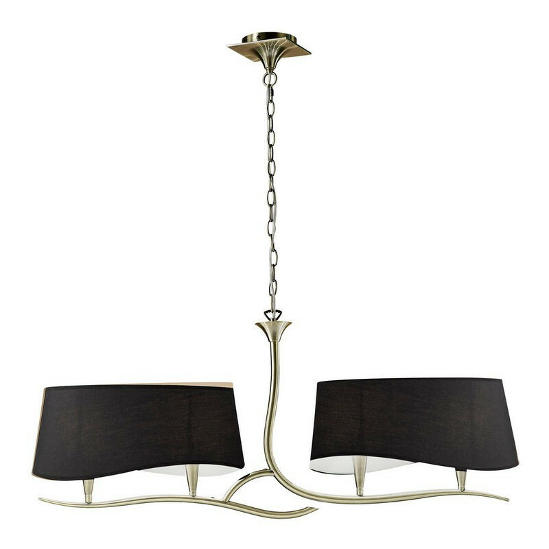 Inspired Mantra Fusion Ninette Ciondolo Lineare Ninette 2 Bracci 4 Luci E14 Con Paralumi Neri In Ottone Anticato | Finitura: ottone antico, nero | Altezza minima: 52 cm | Altezza massima: 150 cm | Lunghezza: 103 cm | Larghezza: 20 cm | Tipo di lampada: E14 | N. di lampade: 4 | Lampadina inclusa: No | Dimmerabile: Sì - Lampade dimmerabili richieste | Peso: 2,5 kg | Potenza (massima): 15W