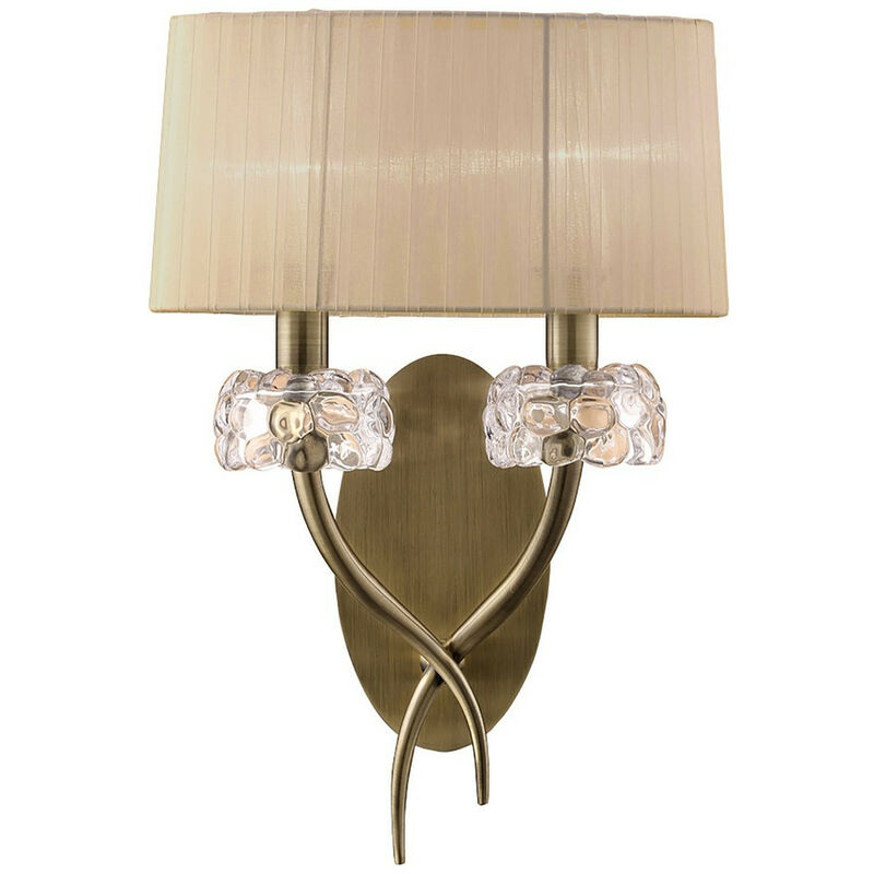 Inspired Mantra Loewe Lampada da parete a 2 luci E14, ottone anticato con paralume in bronzo morbido | Finitura: ottone antico | Classificazione IP: IP20 | Altezza: 46 cm | Larghezza: 31 cm | Proiezione: 19 cm | Tipo di lampada: E14 | N. di lampade: 2 | Lampadina inclusa: No | Dimmerabile: Sì - Lampade dimmerabili richieste | Peso: 2,4 kg | Potenza (massima): 13 W | Commutato: Sì - Interruttore a bilanciere