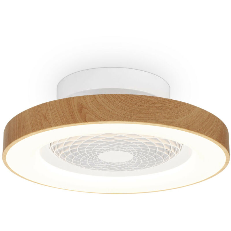 Mantra Tibet Mini Plafoniera LED dimmerabile e ventola CC da 35 W, telecomando, effetto legno/bianco | Finitura: Effetto Legno,Bianco | Grado di protezione IP: IP20 | Altezza: 18,5 cm | Diametro: 53 cm | Tipo di lampada: LED integrato | N. di lampade: 1 | Dimmerabile: Sì - Telecomando | Kelvin: 2700 - 5000K sintonizzabile bianco | Lumen: 3900lm | Peso: 4,4 kg | Potenza (max): ventola - 105 W, lampada - 35 W | Commutato: Sì - Telecomando