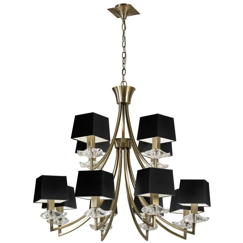 Inspired Mantra Akira AB Ciondolo Akira 2 livelli 12 luci E14, ottone anticato con paralumi neri | Finitura: ottone antico | Altezza minima: 85 cm | Altezza massima: 126 cm | Diametro: 90 cm | Tipo di lampada: E14 | N. di lampade: 12 | Lampadina inclusa: No | Dimmerabile: Sì - Lampade dimmerabili richieste | Peso: 10,1 kg | Potenza (massima): 40W