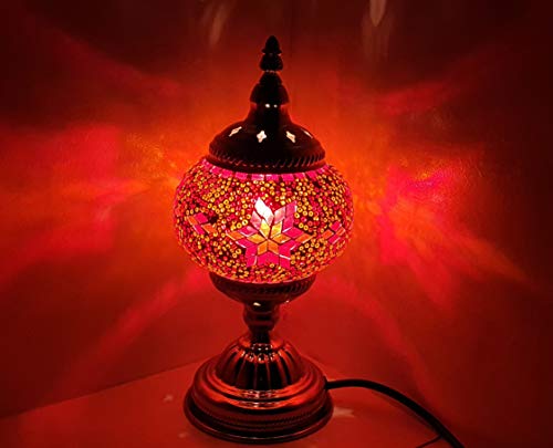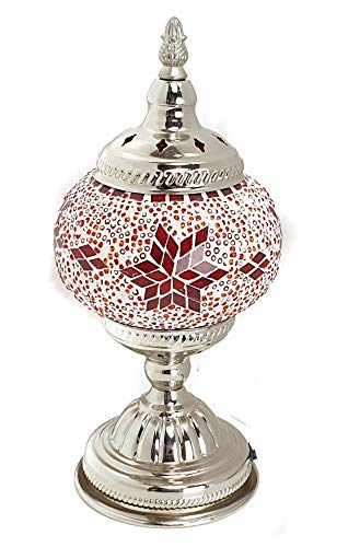 Inspired Styles - Lampada da tavolo turca, base in argento con paralume in vetro a mosaico