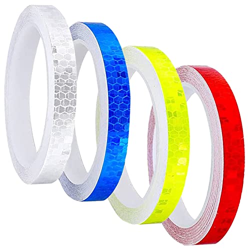 INSPUTOL 4 nastri riflettenti, 10 mm x 8 m, nastro di avvertenza di sicurezza, marcatura di sicurezza, nastro riflettente impermeabile, adesivi riflettenti per veicoli (bianco, blu, rosso, giallo)