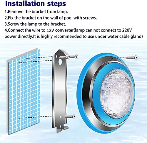 【12-24V】 Il test e l'installazione devono funzionare con una tensione di 12-24V. La tensione di sicurezza del corpo umano è inferiore a 36V, quindi assicurati di utilizzare questo Impermeabile Sommergibili. Ma il trasformatore elettronico per 12-24V deve essere preparato dal cliente, non è incluso nella confezione!!!