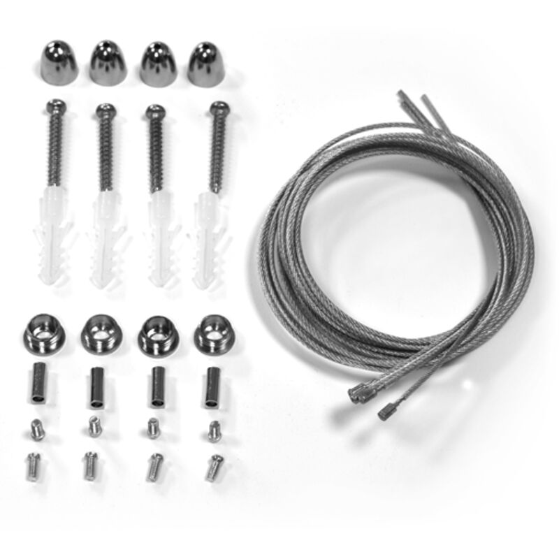 4 attacchi per pannello. Kit di installazione pannello LED Il kit comprende: 4 cavetti in acciaio da 1 metro, 4 attacchi per soffitto e 4 attacchi per pannello.