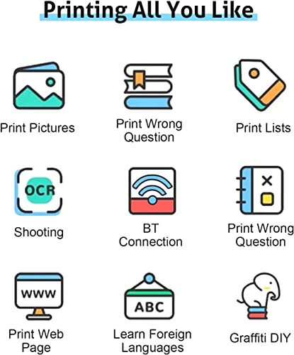 【High Quality Thermal Printer】This Thermal Photo Printer uses no ink, no cables, you can print anywhere and everywhere. Our package includes 13 rolls of printing paper (5 rolls of thermal paper + 5 rolls of Self-adhesive thermal paper + 3 rolls of colored paper) and USB charging cable, no need to buy additional accessories during use.